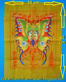 This is stunning Phayant Butterfly King With 2 Temple Chop, strongly blessed by Kruba Krissana in year BE2556. Featured with Beautiful of Colourful Butterfly image and sacred Yant images on this Phayant cloth. This sacred Phayant have 3 colours cloth and 3 design. Additional have 2 Temple Chop on the Phayant. Blessed by Kruba Krissana and recite “Thewa Nakri"
