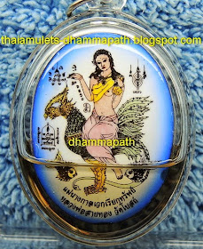 Special: This is Efficacious Charming of Locket Mae Nang Kalawet Soaked Charming Oil With Inn Kru Roop & 3 Silver Takruts (Height 4.5cm) strongly blessed by LP SaiThong in year BE2556. Featured sacred Locket of Mae Nang Kalawet image with Phoenix Bird, Wealthy Tapian Fishes and sacred Yant at front. This sacred Locket is added Charming Oil with sacred Holy powder materials materials and embedded Charming Inn Kru Roop and 3 Silver Takruts, Gemstones, Beads and Code at back.This charming Locket Mae Nang Kalawet is made 100pcs only. Supplied with Casing. I highly recommend to you.