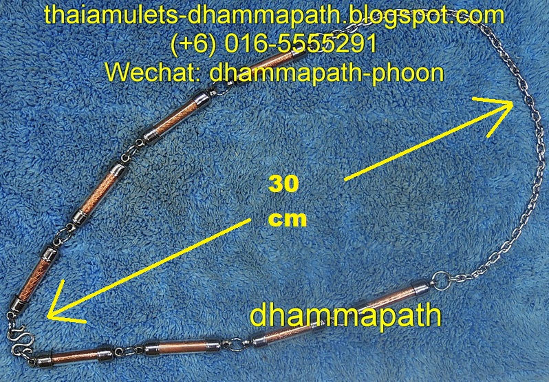 This is Powerful of Chain Takruts 12 Zodiac Nur Thong Deang, strongly blessed by LP Chek and Top Monks in year BE2553. Featured stunning Chain Takruts (8pcs) with made as Chain Necklace. This sacred Chain Takruts is made from sacred Thong Deang materials and added Steel Casing and Chain. Additional with image of sacred Yants inside.