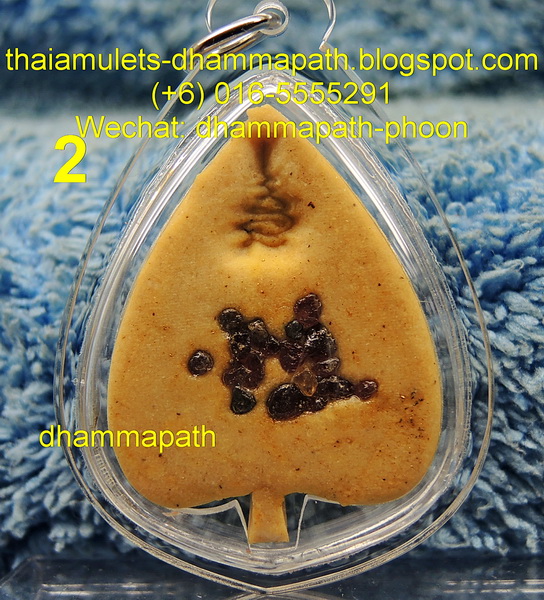 Special: This is a stunning & Powerful KleepBua Phra Buddha With Rae Nur Kesorn (height 4.3cm) strongly blessed by LP SamNeng and Ajahn Klang Seng in year BE2560. This sacred KleepBua Phra Buddha is made from sacred Holy Kesorn materials. Featured with sacred image of Phra Buddha at front and on the Bodhi Leaf shape design. Additional with Chop Code and embedded Rae Gemstones at back. Supplied with casing. Highly Efficacious and recommend to you.