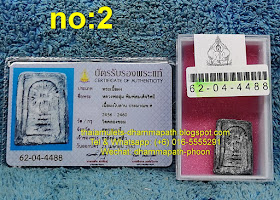 This Rare and Powerful of Phra Somdej Pim Rassami Kru Chedi KlongKhom Nur Phong Bailan + Genuine Sammakom Certificate, strongly blessed by LP Suk (Wat Pak Khlong Makham Thao), LP Parn (Wat BangNomKho), LP Am (Wat Klong Khom), LP Boei (Wat Manow), LP Im (Wat Huakao) and Top Monks in years BE2460, after the Blessing Ceremony this batch of amulets was kept inside the Chedi at the temple of Wat Klong Khom, and later discovered in BE2522-24. This Powerful of sacred Phra Somdej Pim Rassami is made from sacred mixed with ittijay the main Holy powder materials and Bailan materials of ashes after burning Buddhist Palm Leaf Holy Scriptures. Featured with sacred image of Phra Somdej with raised radius lines behind the head of Buddha & seating 3 tiers at front and smooth plain at back. Featured with Verified Genuine by Sammakom Certificate.